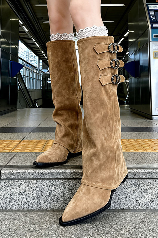 Women‘s Casual Buckle Knee High Boots