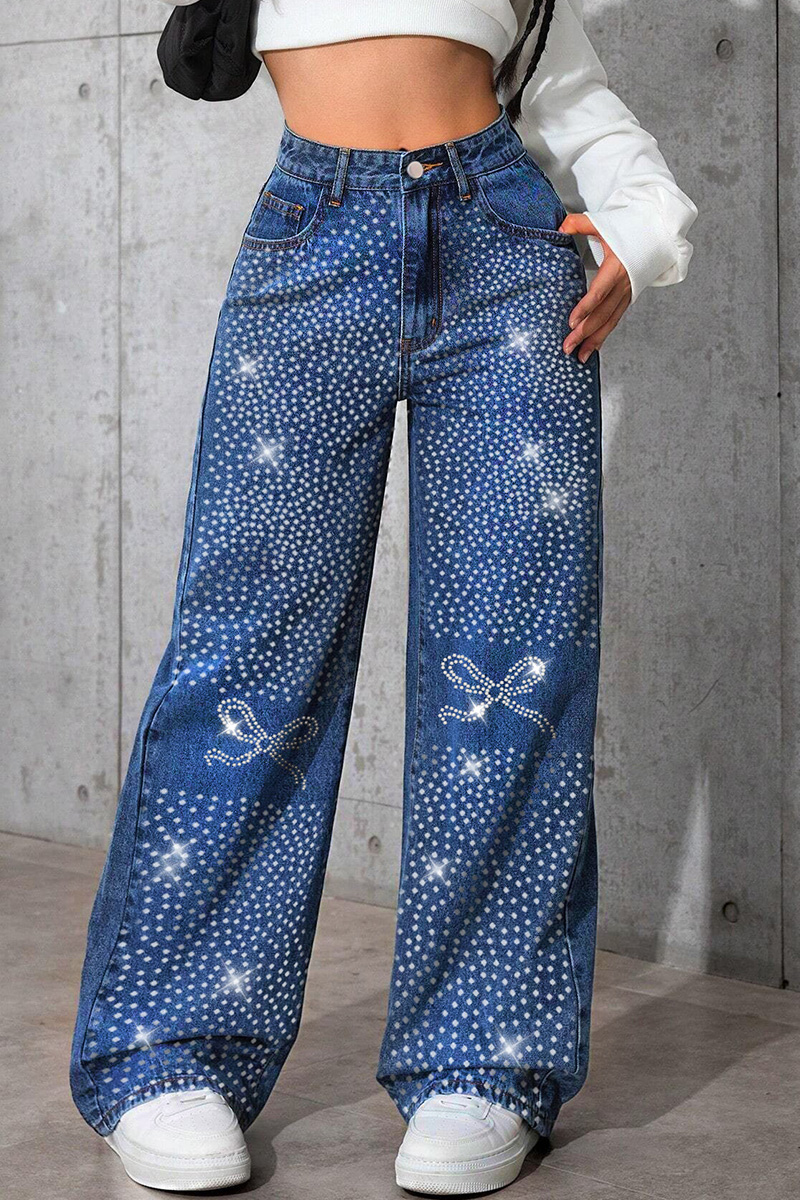 Women's Clean Sparkle Bow Jeans With Crystal Embellishments