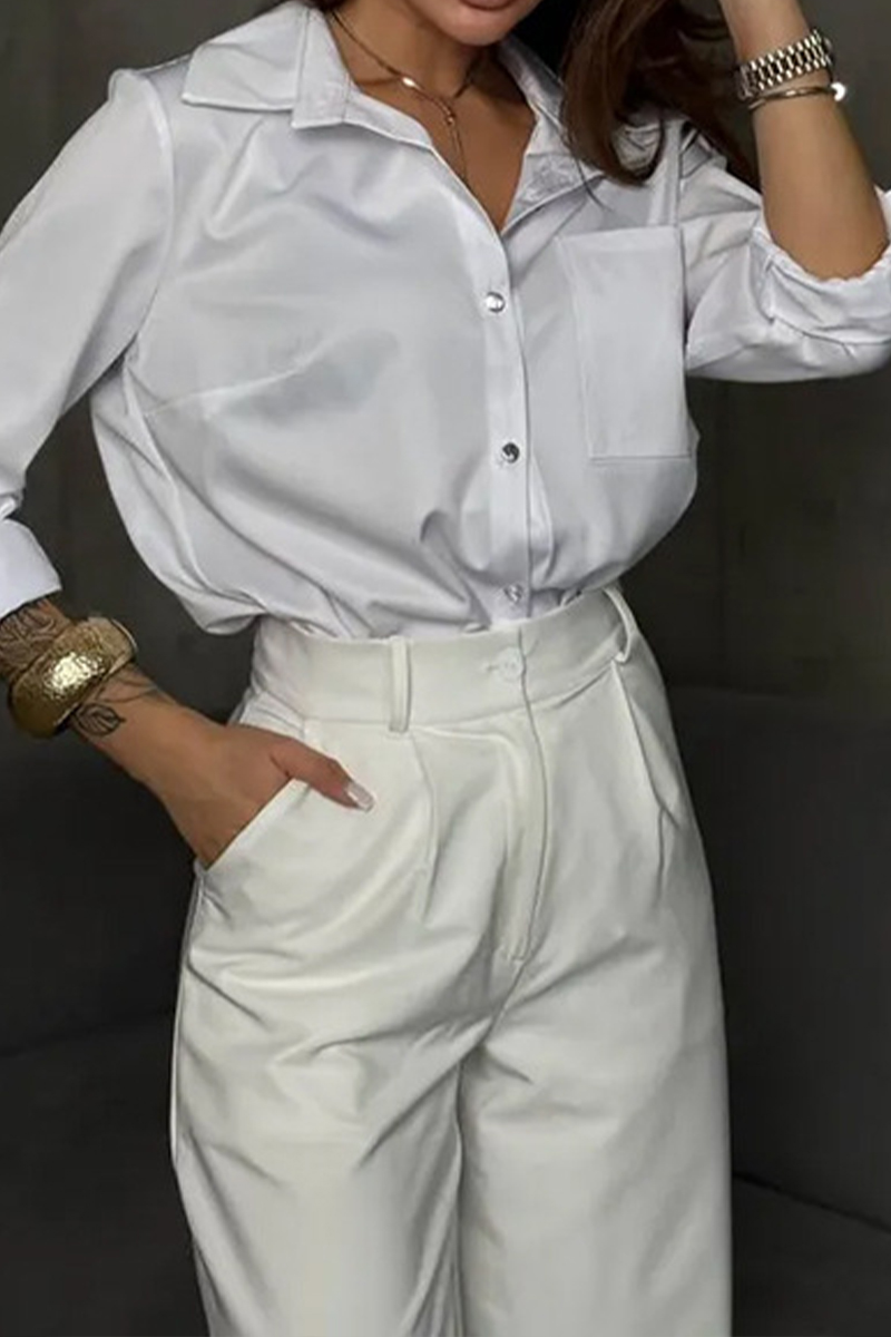 Ladies' Casual White Long Sleeved Versatile Button Up Shirt
