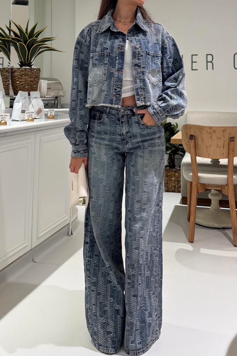 Women's Casual Pleated Denim Top And Straight Leg Jeans