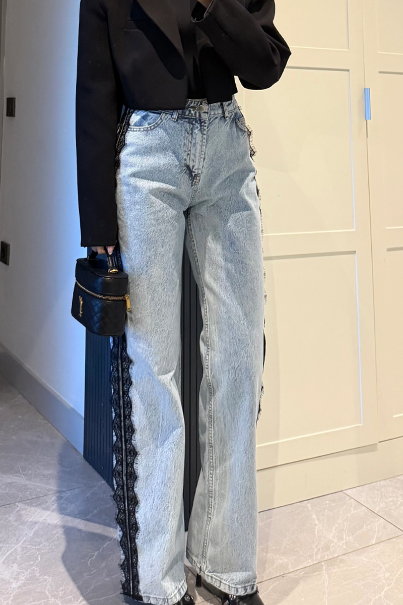 Ladies' Hot Selling Casual Lace Spliced Straight Leg Jeans