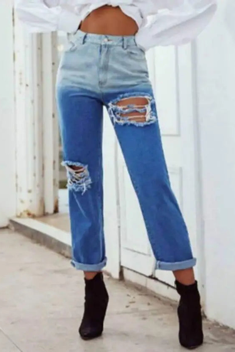 Women's Bestseller Fashion Multicolor Rhinestone Ripped Jeans