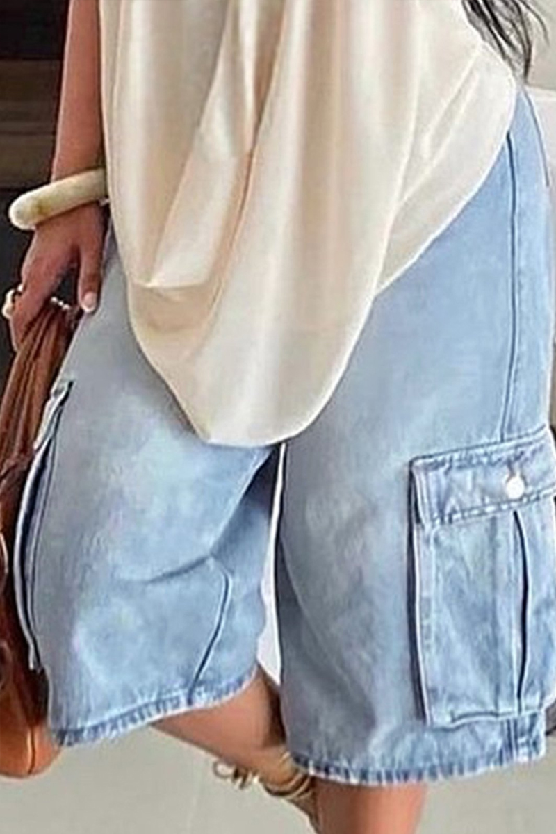 Casual Cargo Pocket Washed Wide Leg Jeans