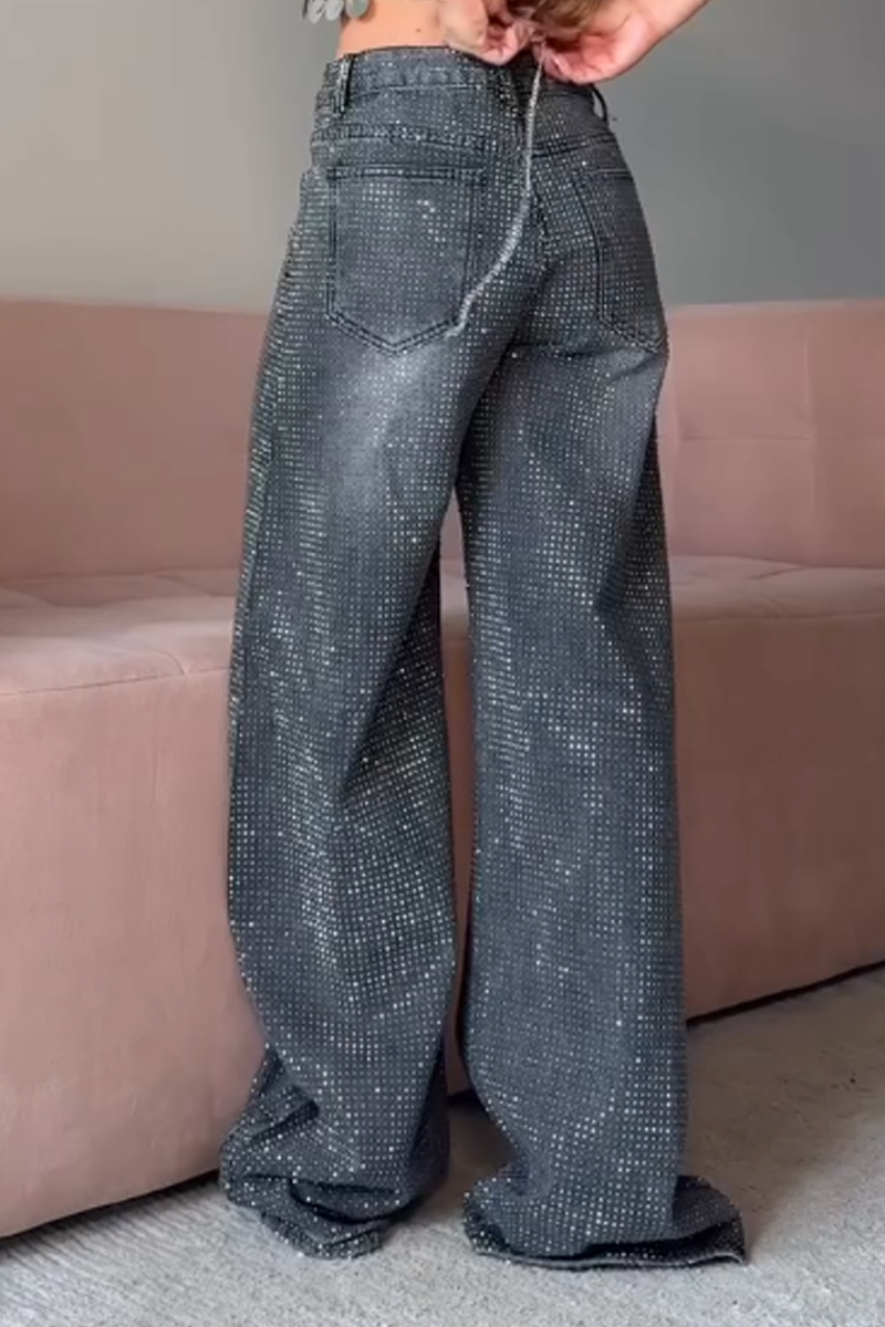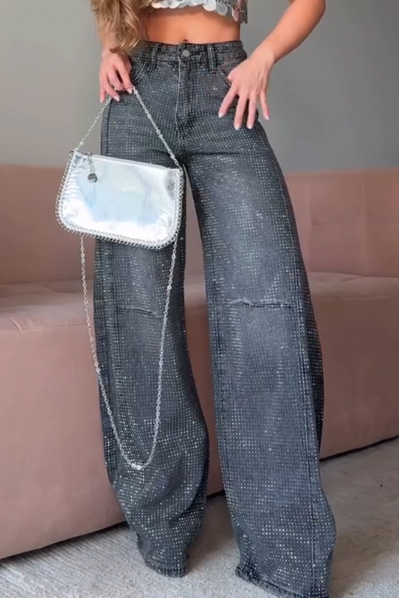 Hot Selling Women's Rhinestone Wide Leg Jeans