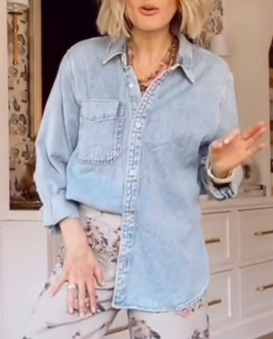 Women's Denim Top + Printed Trousers Casual Set