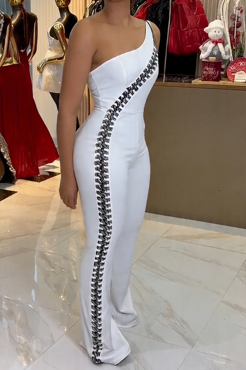 Women's Elegant V Neck Puff Sleeve Wide Leg Jumpsuit