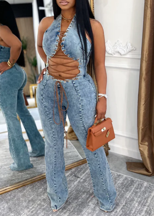 Women's Strappy Fit Sexy Denim Jumpsuit