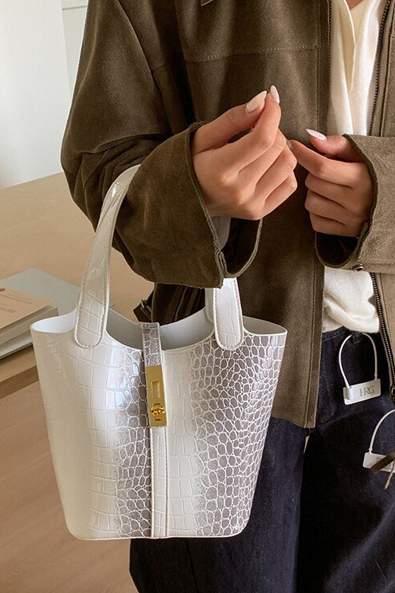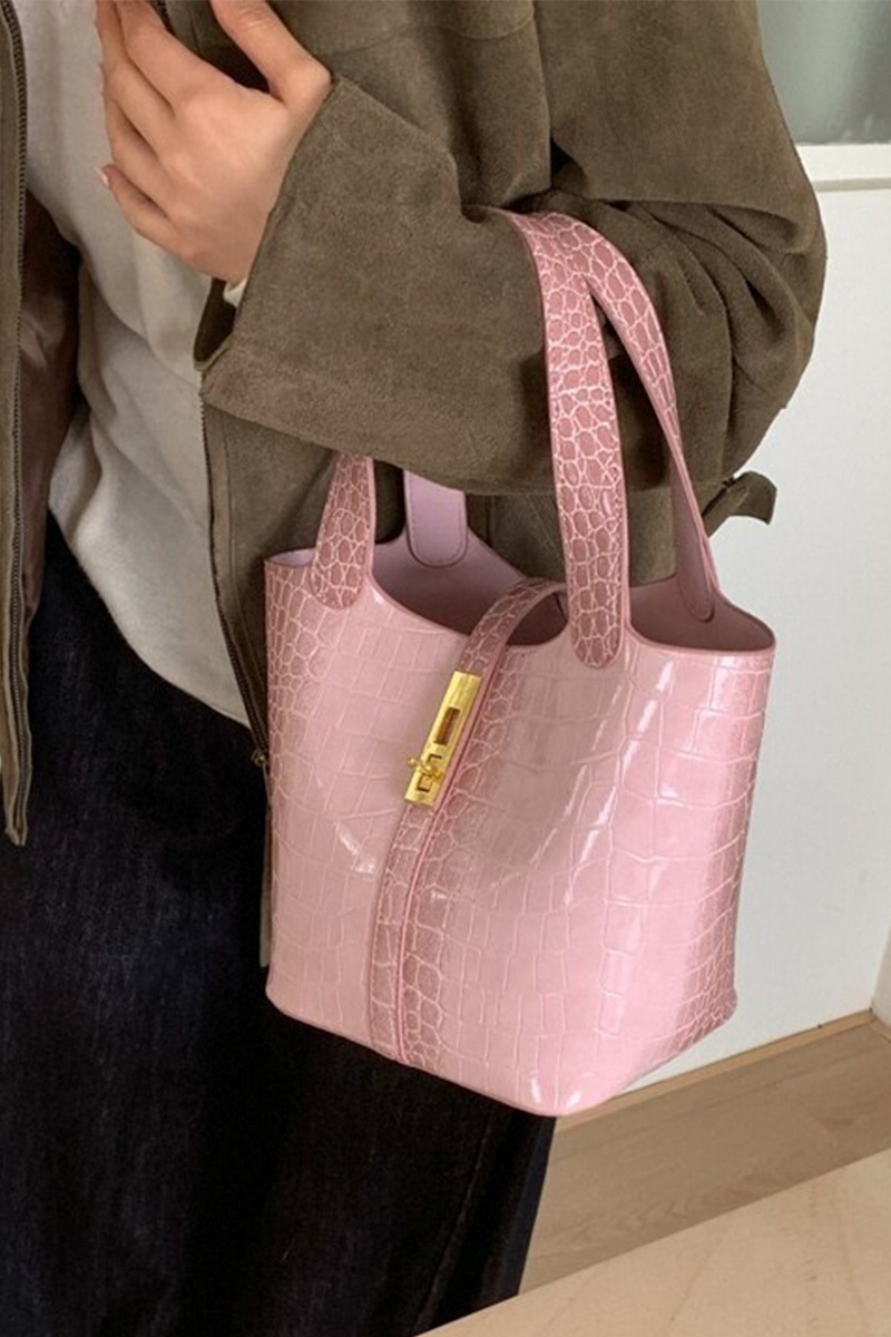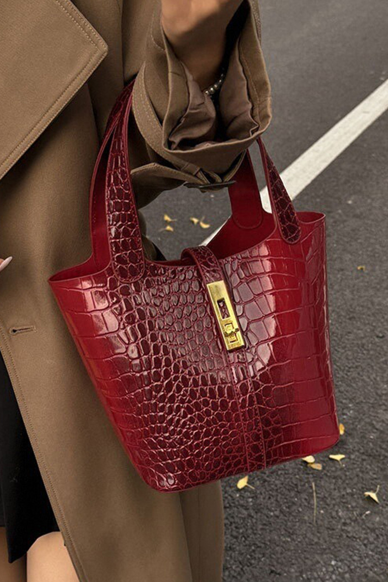 Women's Stylish Croc-Embossed Vintage Bucket Bags